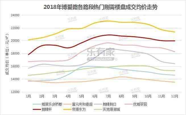 乐有家研究中心数据显示,博爱路热门投资楼盘,部分呈驼峰状,即全年有两个上涨小高峰。每个楼盘小高峰出现时间段无明显规律,但大都集中在年中(约6-9月),年初和年末价位较平缓。