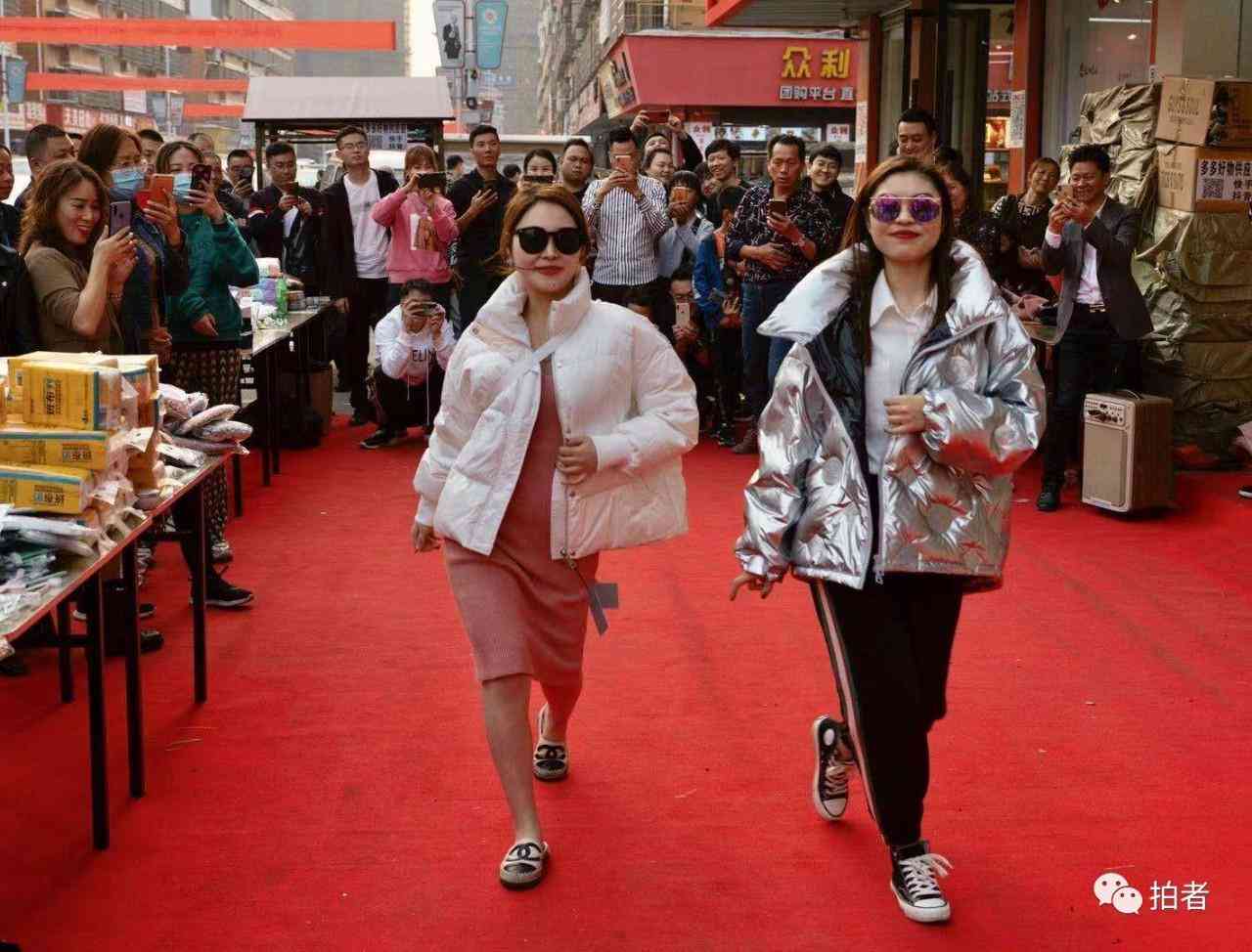 △ 两位女主播在商户门前走红毯、拍段子,引得路人围观。
