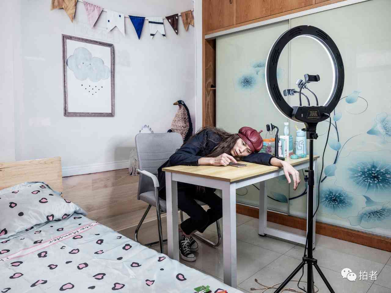 △ 32岁的冉光辉戴着假发,趴在直播台休息。他来自四川,之前是地产策划,本来在当地有着体面的高收入,但为了创业梦想,和亲兄弟一起来到义乌。他坚信,只有制作质量高、有创意点的短视频才可以获得更多流量。