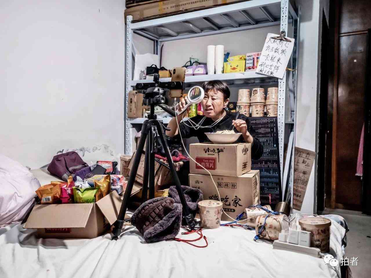 △ 晚上9点,51岁的东北人王桂英在不足20平方米的出租房里,边吃白水煮的面条边直播,货品散乱摆放在身后。来义乌之前,王桂英做过不少小生意,由于经营不善欠了钱,她和老伴决定来义乌直播创业谋生计。做了2个月,收效甚微,老伴为补贴家用,又去外地打工,只留下她一人闯荡。