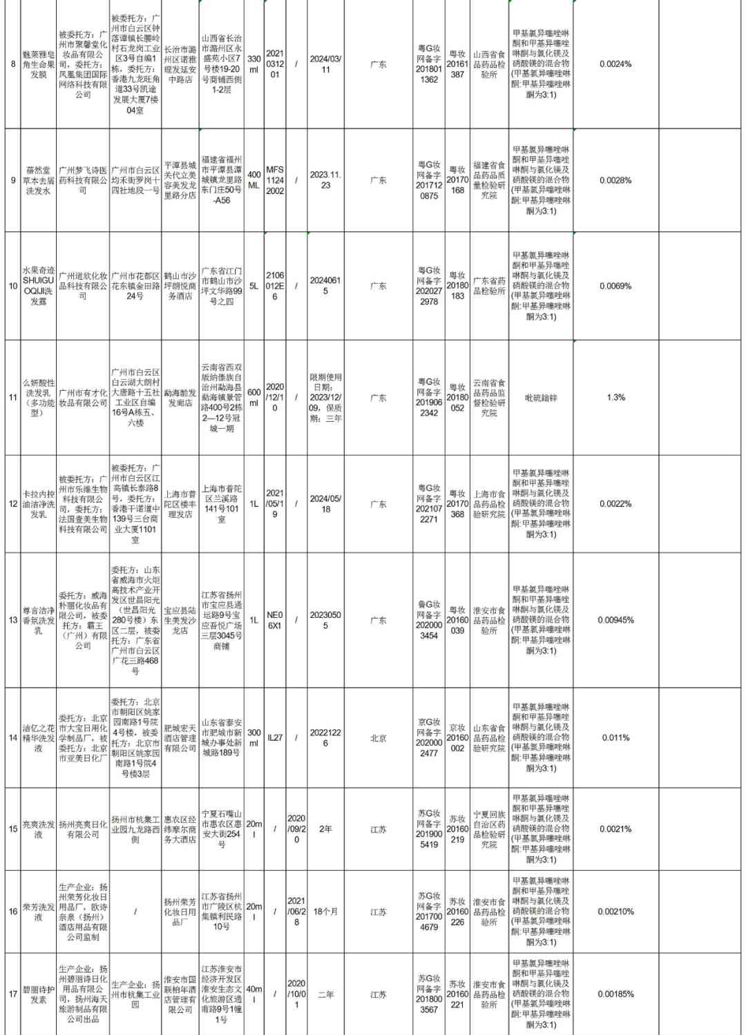 在洗护类产品中,不合格项目集中在甲基氯异噻唑啉酮和甲基异噻唑啉酮与氯化镁及硝酸镁的混合物比例问题,这是一款防腐剂,标准的是甲基氯异噻唑啉酮和甲基异噻唑啉酮比例为3:1。