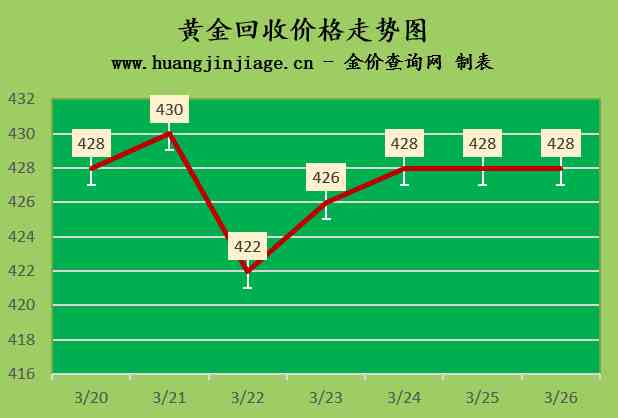 黄金回收价格428元/克,铂金回收价格188元/克,钯金回收价格290元/克,18K金回收价格306元/克,银条回收价格3.6元/克。(黄金行情是波动的,回收金价没有固定标准。)