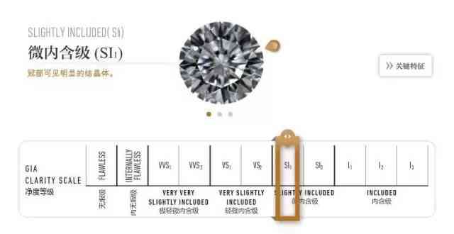 看钻石是否干净。SI1 以下肉眼看钻石瑕疵非常明显了,净度千万不要低于SI1。