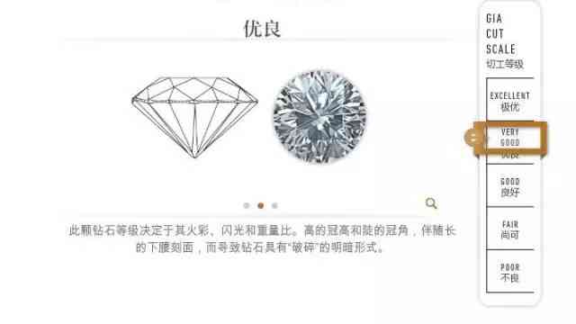 切工决定钻石是否闪烁。别看第三等叫“良好good”,切工到这一级钻戒看起来就灰蒙蒙的不够闪了。所以切工记得不要低于第二等“优良Very good”。