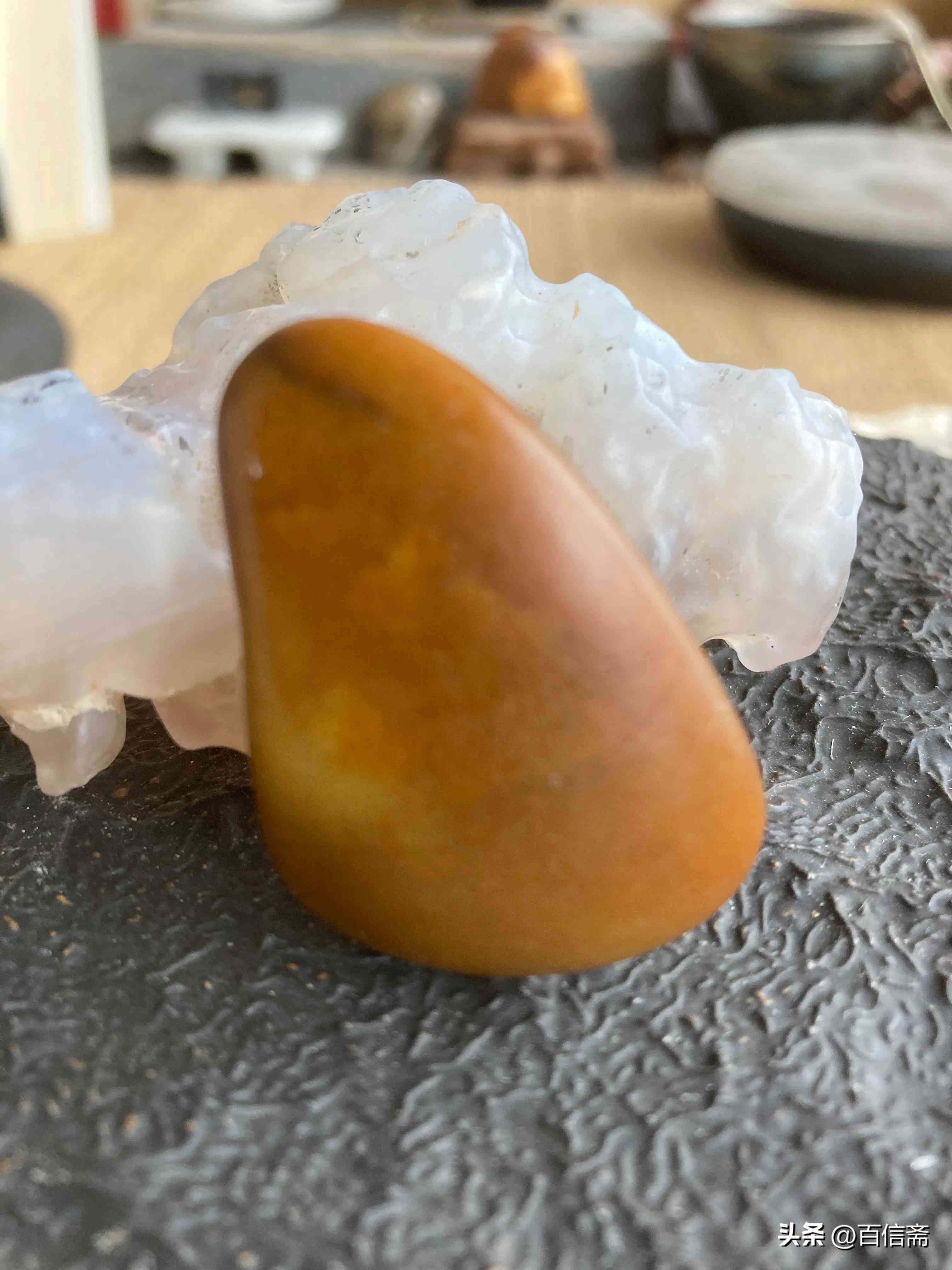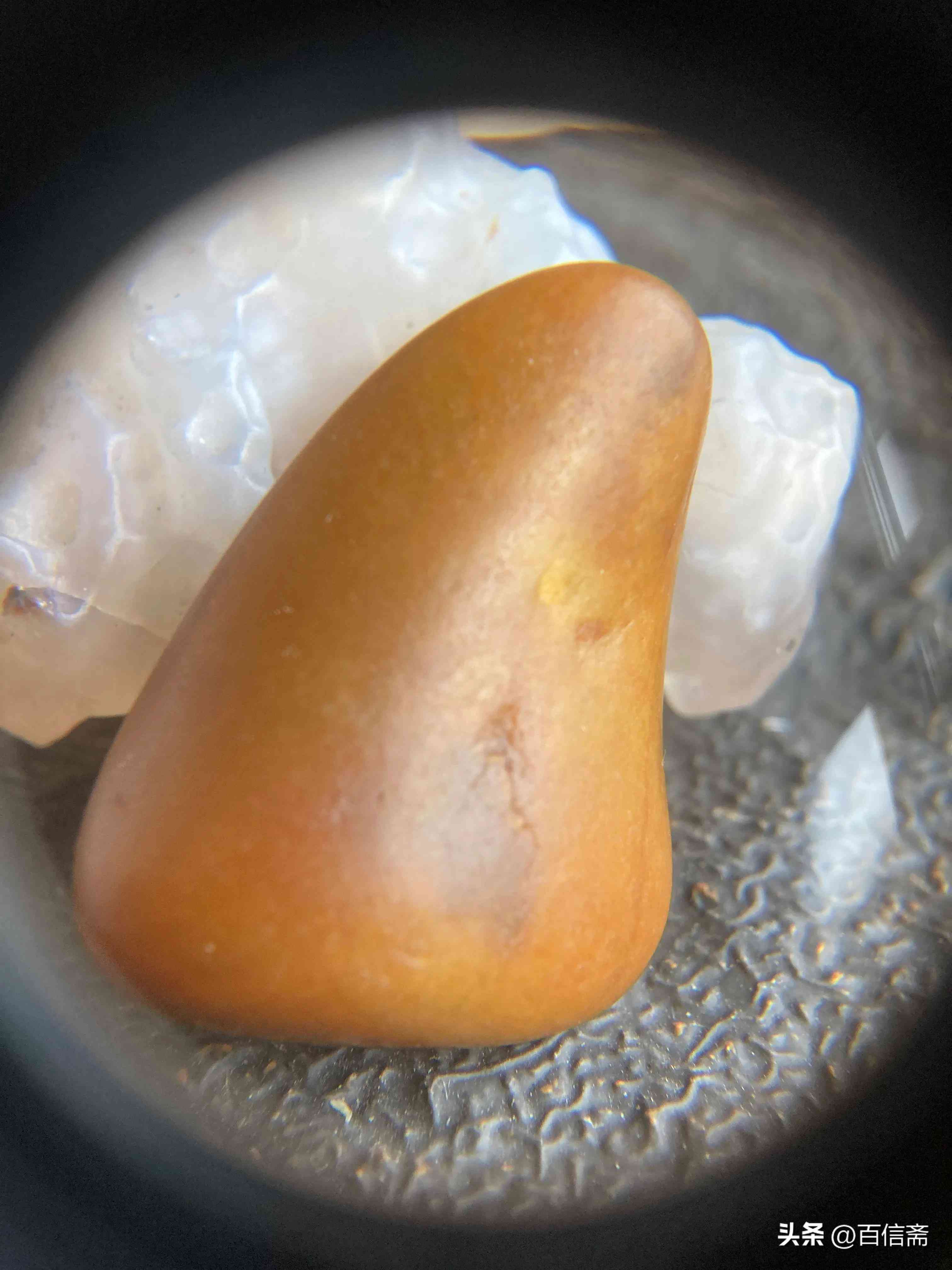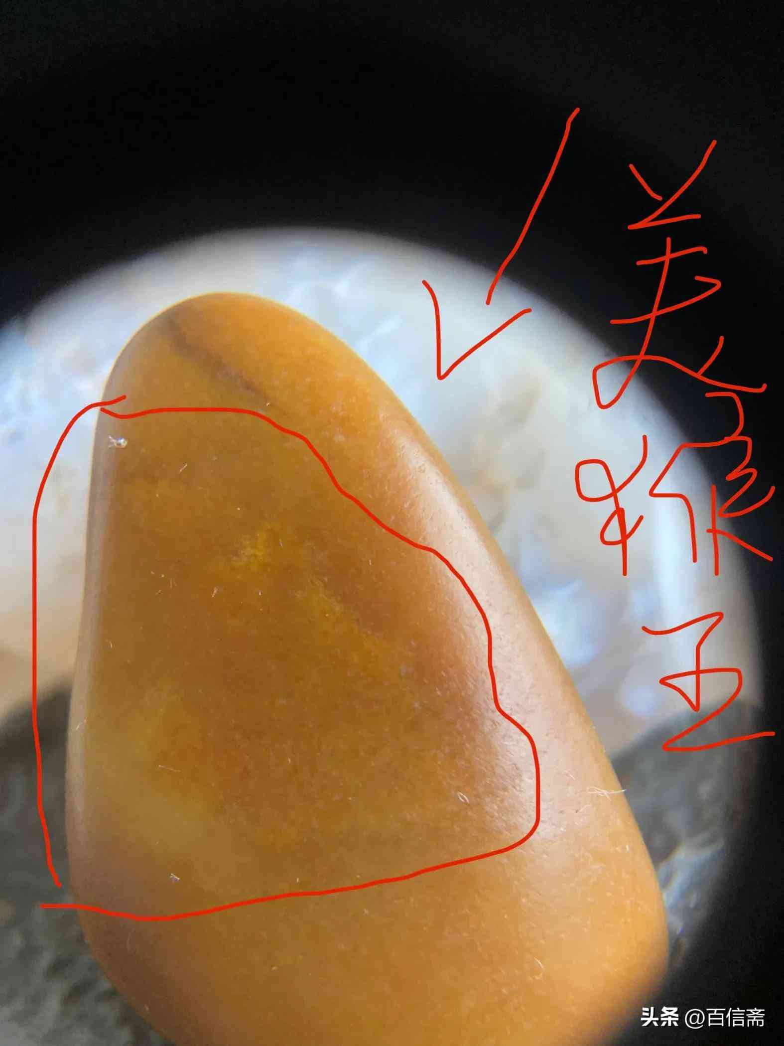 2、该宝贝毛孔清晰连续完整!有自然的阴阳面是非常难得的一口气的极品籽玉!自然天成无任何修磨这是非常难得的!出水那一刻带碱皮壳状态时就成为私人藏品!20多年以来从未示人!曾经的原主人我的维吾尔阿达西!要10倍高价回收【百姓斋】主人拒绝了!要知道出水的那一刻就注定它不平凡的身份!俗话说“玉遇有缘人”!这话一点都不假!二十年前见到它的那一刻就注定了我们的缘分!毫不犹豫直接重金拿下!当时有很多玉商立刻追着看东西出高价!对不起都被我拒绝!这就是眼力缘分和机遇!