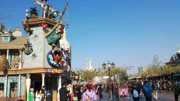 最近几天上海的空气真是无比清澈,迪斯尼红色的牌匾在蓝天映衬下分外鲜艳。阳光正好,虽然园内人流如织,但外表沧桑内心柔软的我还是被那些童话中的建筑深深打动。在这样的街道上行走,是不是不小心就会遇到一位睡醒的公主或巡游的王子呢?