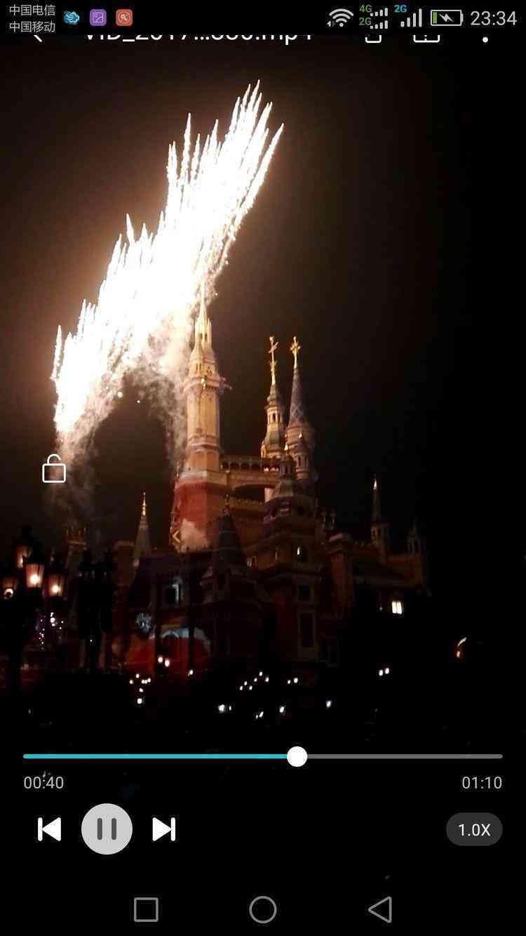 赶在盛大的烟火表演前,我们在皮诺丘乡村厨房吃了份套餐,口感和色泽都还不错。城堡的灯光亮起来,随着不同的电影插曲,不同的电影画面依次投影在高高的城堡外墙上。在音乐的高潮处,一束束巨大的烟火从城堡的尖顶处喷薄而出,在夜空中留下璀璨的刹那芳华。此刻我多想成为一个孩子,对着被烟火照亮的夜空许下最美丽的新年愿望。