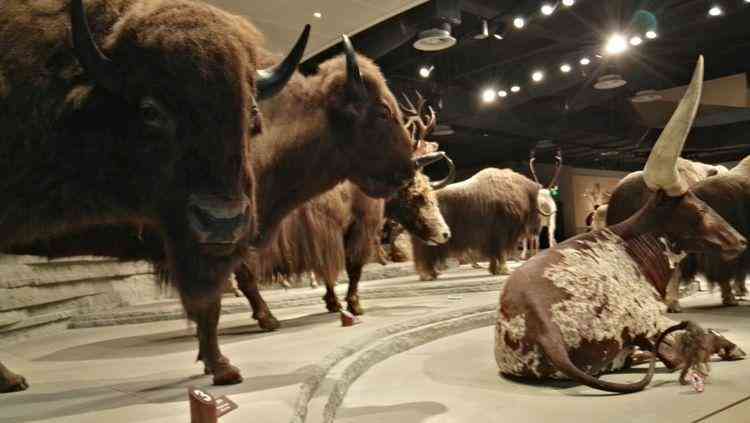 两个小家伙一路看下去很兴奋,尤其在矿石标本前流连忘返。他们各自都有自己的百宝箱,里面是各种化石和矿石,所以对这里的知识也有个一知半解。男孩都不喜欢拍照,尤其在这样尴尬年龄的男孩子更是如此,好不容易连哄带骗,他们才在牛头墙前站定。祝愿两个小家伙未来都能更牛吧。