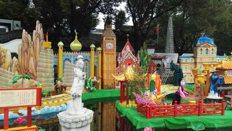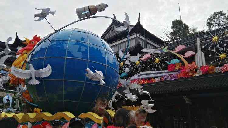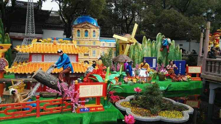 随着人流走进九曲桥,桥两旁的河道中展示的几大组大型场景类花灯。中外美景,古今名人,里弄日常,难得的是花灯也能做得如此细腻逼真。过年就是要这样桃红柳绿、热闹欢喜吧。这才是我们中国特有的年味。