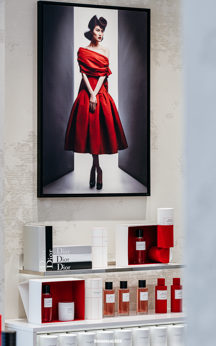 DIOR香氛世家是精品店独有的系列,涵盖香水、香氛丝巾、香氛蜡烛等产品。随处可见的迪奥999红色,是对经典的致敬。