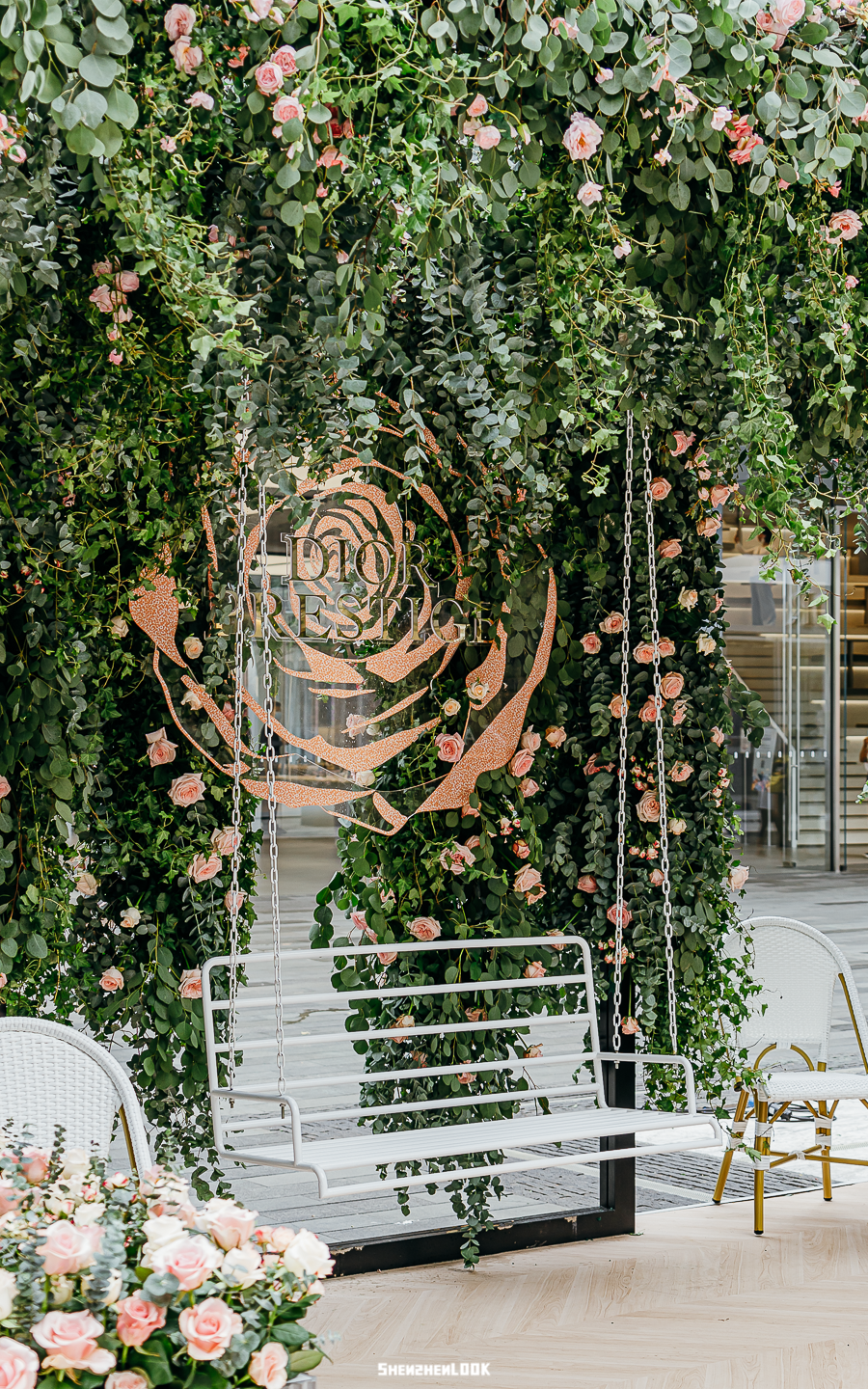 本次DIOR搭建的法式花园中布满玫瑰,还有法式玫瑰墙及白色秋千,十分梦幻,且飘来阵阵玫瑰花的清香。
