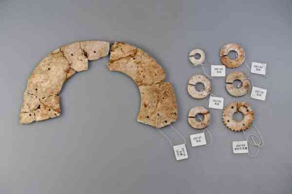出土的最大玉璜及玉玦、齿轮形玉璧。徐旻昊 摄