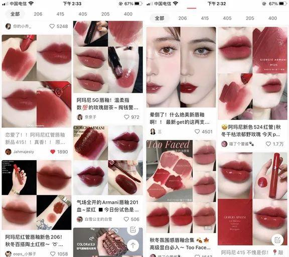 搜索小红书平台,也被美妆博主们的试色图霸屏了。