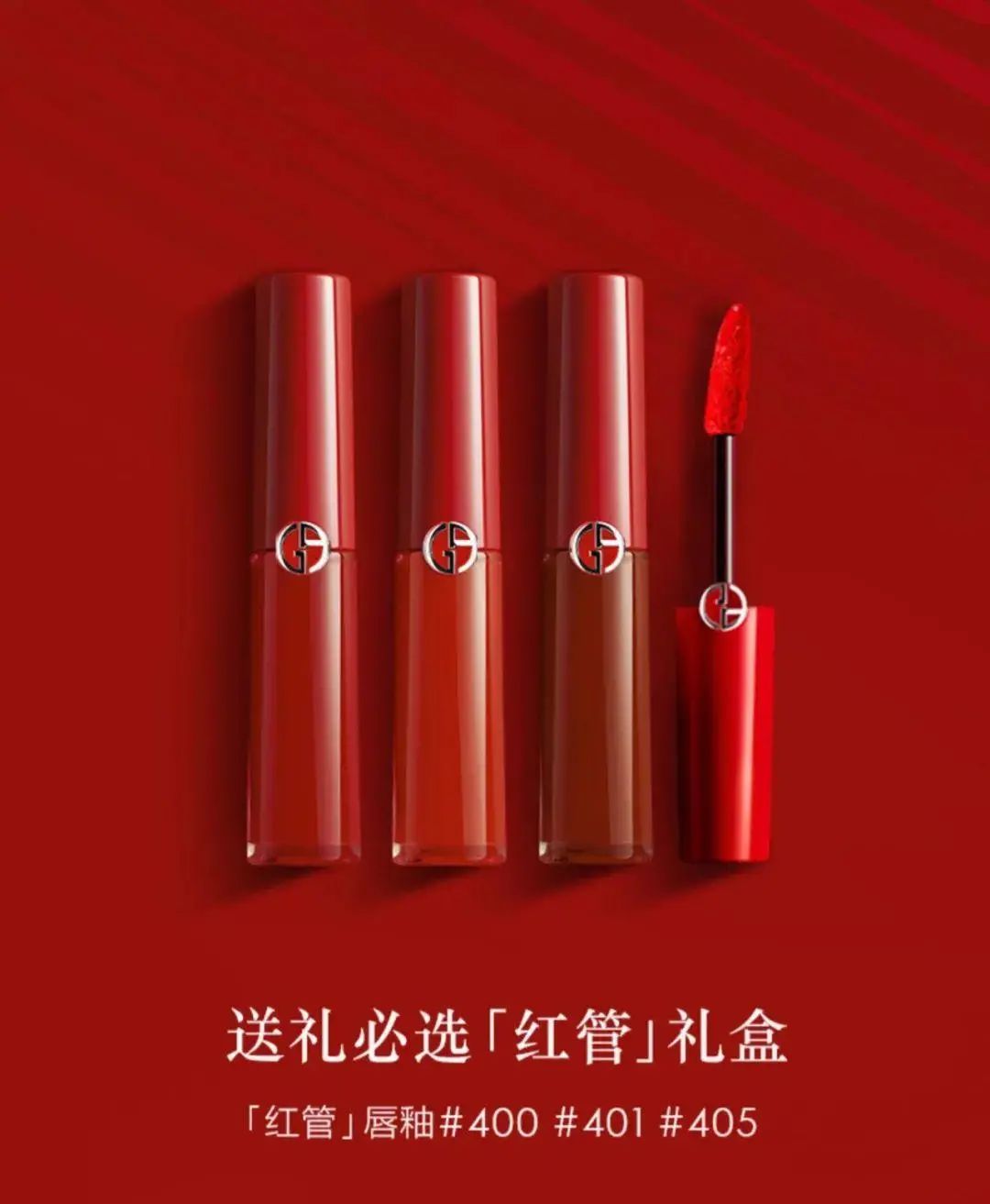 礼盒中都是阿玛尼的断货、热门色号:#400阿玛尼正红+#401元气橘红+#405人气烂番茄色。