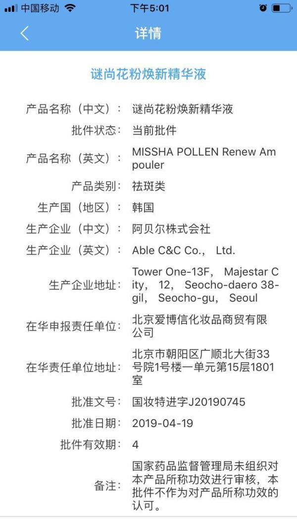 通过该APP,消费者可以查询到化妆品的产品名称、备案编号、备案信息、成分,实际生产企业的企业名、地址、生产许可证编号等信息,消费者可在查询后与自己手中的化妆品进行对比检查。