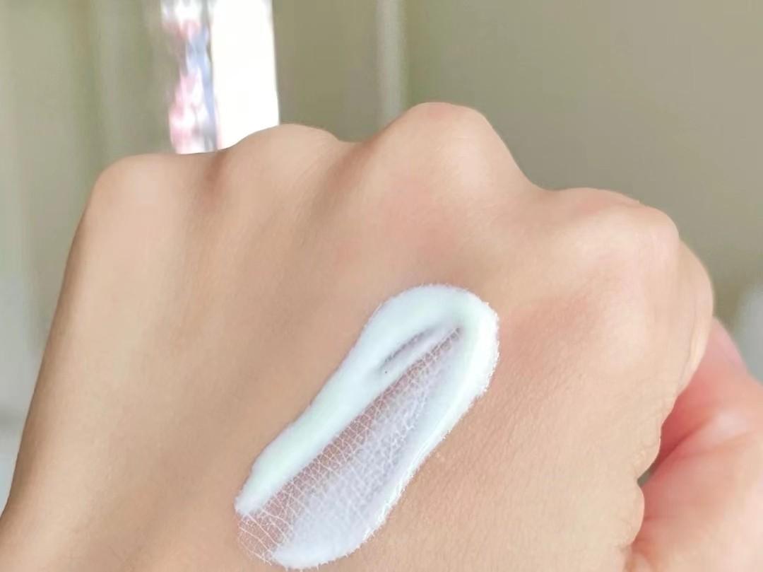 这支防晒霜配方经过调色处理,解决了物理防晒假白的问题。肤色凝乳质地,上脸水润不粘腻,几乎没有润色效果。