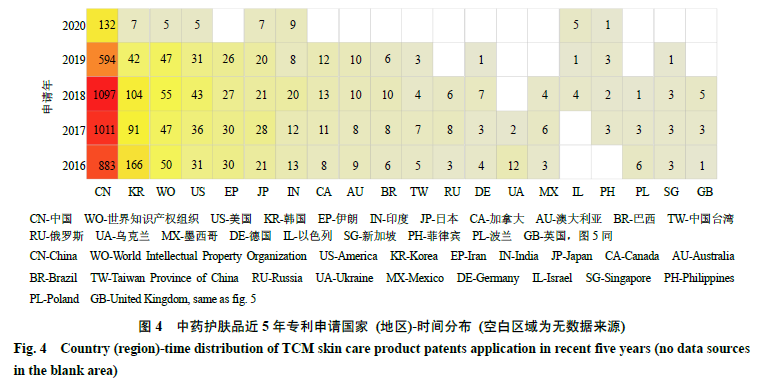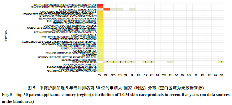 来 源:束雅春,李丹婷,李 静,刘 杨,江志伟.基于全球专利视角下的中药护肤品相关研究的可视化分析 [J]. 中草药, 2022, 53(21): 6832-6839 .