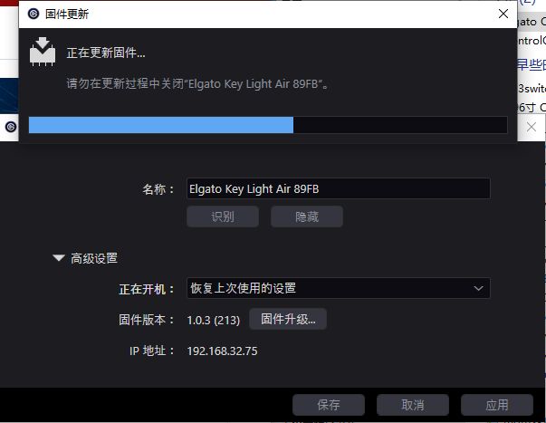 安装好驱动将 Key Light Air 上电之后提示更新,毫不犹豫点了是。