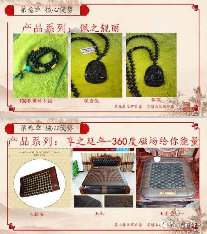 墨玉公主的宣传资料中,还附上了案例,66岁的高奶奶患有家族遗传性高血压,长期服用降压药,高压在180~200以上,使用墨玉坐垫和墨玉腰封半年后停掉了降压药,血压也稳定在130左右;75岁的徐爷爷患了中风,左边身子偏瘫,生活不能自理,使用墨玉枕头和墨玉床垫三个月后,左手功能恢复正常,三年后日常生活完全可以自理,还可以拿三五十斤的重物;有个孩子用墨玉玉粉泡浴100次,治好了身上和脸上的皮肤病;还有人泡浴100次治好了严重的牛皮癣。盛世玉宠的商城中,还直接宣传墨玉腰封对男性前列腺炎有很好的调理作用,对肾虚、性功能减退也有明显效果,对女性妇科疾病如小腹疼痛、痛经、月经不调、盆腔积液、宫颈类疾病都有明显效果。