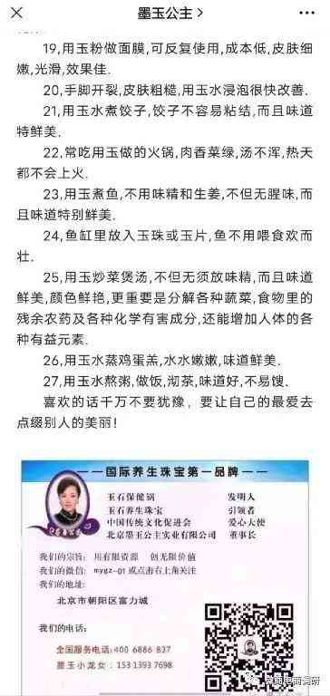 但微商电商调研调查发现,墨玉公主(北京)生物科技有限公司虚假宣传产品功效,盛世玉宠的抢购模式也隐藏着巨大的风险。
