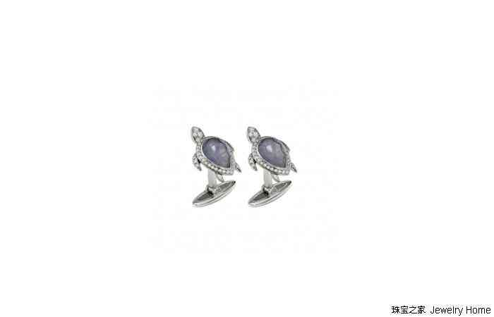Cartier 卡地亚 袖扣,18K白金,玉髓,钻石,19.7 x 22.5毫米,售价:RMB 135,000