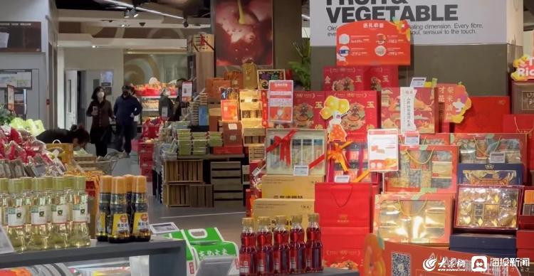 位于三层的Olé精品超市,门口处放满了新春需要的对联、福字,收银台前的队伍络绎不绝。据记者观察到,很多顾客都是一家老小齐出行,老人牵着孩子,父母在一旁认真选购手中的商品。