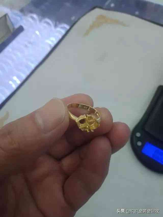 这戒指表面看着颜色跟纯黄金的差不多,但是专业人士一看就知道,颜色不是很黄,发青绿色,硬度还特别硬,用火一烧就全黑了,必须用强酸药水才能刺激黄回来,这种含量的金子回收价格直接差了三分之一。