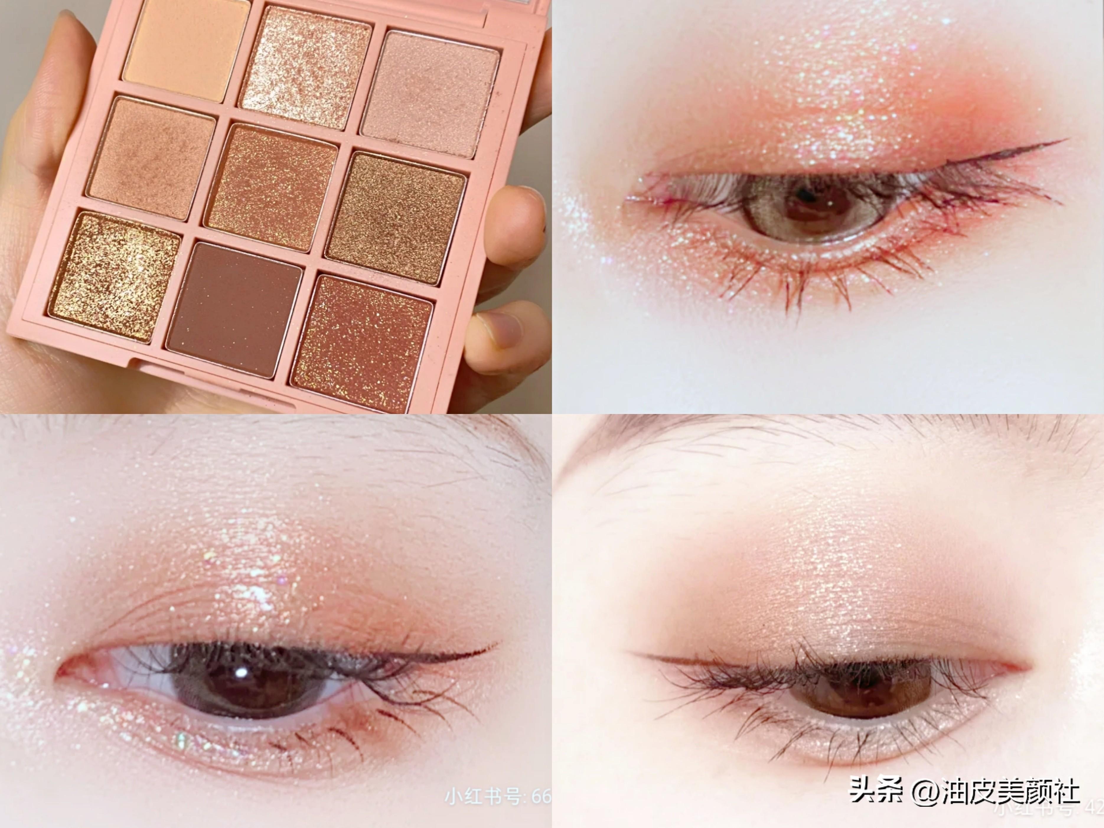 有段时间我可是天天刷它,可盐可甜,温柔百搭。不管你是想要高级感的奶油栗子妆,还是甜蜜动人的约会妆,它都可以让你轻松拥有。喜欢里面细闪的珠光,有一种湿漉漉的水光感,清透自然,特别是左下的金色闪片,用来画卧蚕绝美!