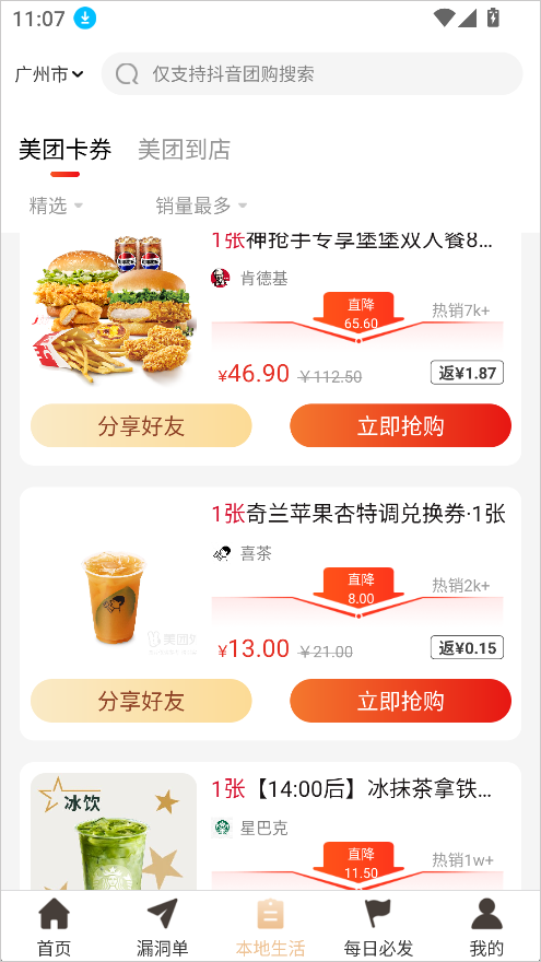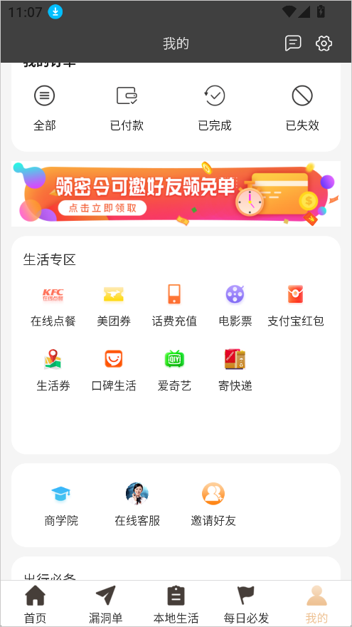 3、在本地生活板块中主要是身边的日常消费,有外卖、餐饮、娱乐、加油、电影票等本地化服务优惠;