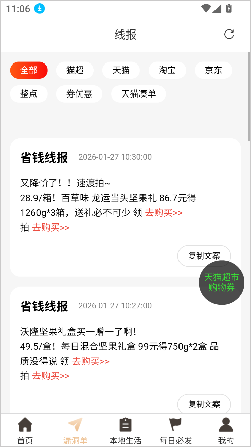 2、在漏洞单板块中,会推送限时、低价的专属优惠信息,感兴趣的即可点击进入查看商品;