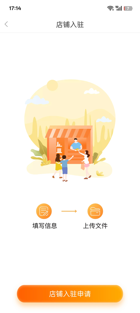 4、店铺入驻需要填写信息以及上传门店文件,点击“店铺入驻申请”;
