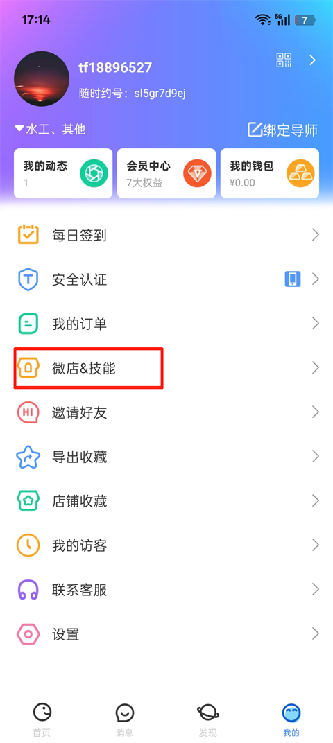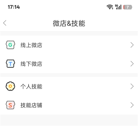 2、在对应功能中找到“微店&技能”;