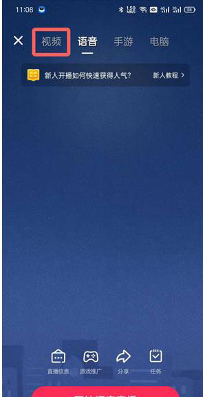 4、可以荀泽视频、语音、手游、电脑等功能,根据个人直播需求选择即可;