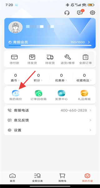 1、在平台上有很多材料、五金等工具可以购买,为了方便管理还可以建立询价单,点击底部“我的收藏”;