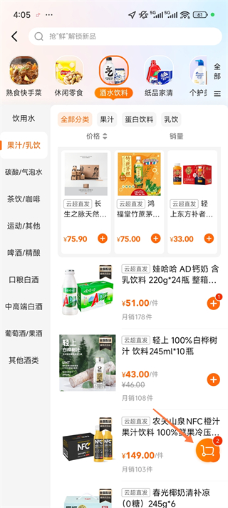 3、将需要的商品先添加到购物车当中,右下角会显示购物车中商品的数量;
