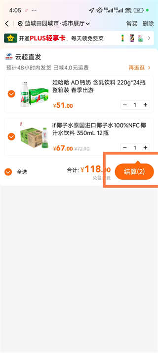 4、结算时系统会自动勾选最划算的优惠券组合,满减怎么凑省钱直接告诉你怎么买。
