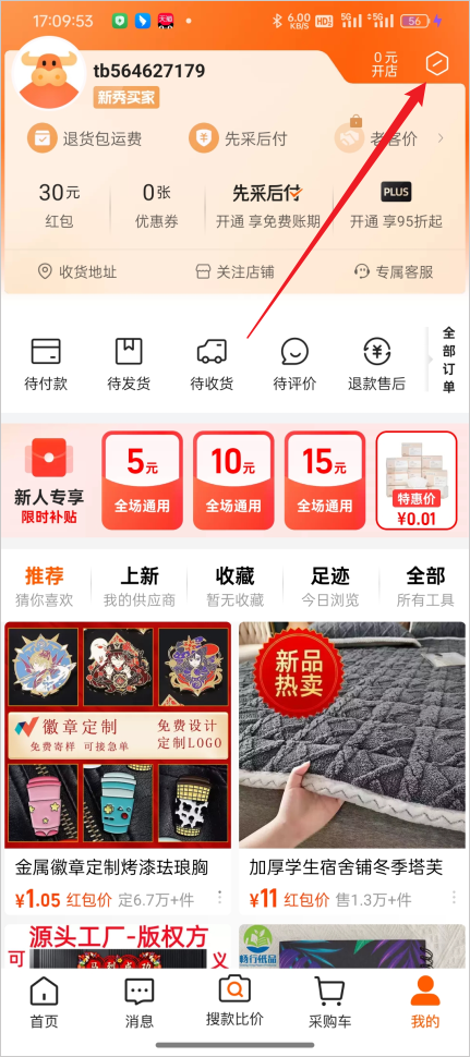 1、登录阿里巴巴批发平台,点击底部“我的”;