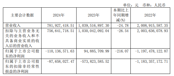 2021年至2024年,全筑股份归属于母公司股东的净利润分别为-12.93亿元、-11.97亿元、9488.57万元和-1.10亿元,扣非后净利润分别为-13.11亿元、-11.83亿元、-5.74亿元和-8765.80万元。