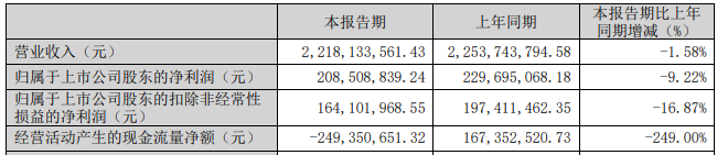 2025年季度,三全食品营业收入为22.18亿元,同比下降1.58%;归属于上市公司股东的净利润2.09亿元,同比下降9.22%;归属于上市公司股东的扣除非经常性损益的净利润1.64亿元,同比下降16.87%;经营活动产生的现金流量净额-2.49亿元,上年同期为1.67亿元。