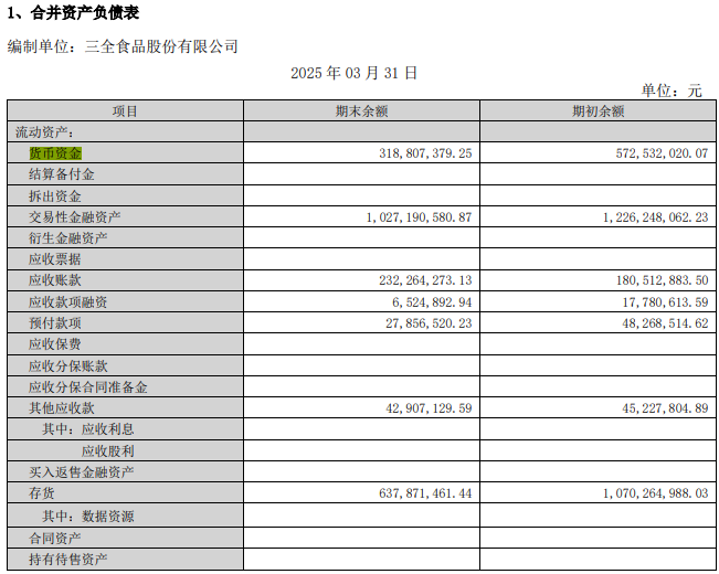 截至今年一季度末,三全食品货币资金为3.19亿元,短期借款为6亿元。截至今年一季度末,三全食品交易性金融资产为10.27亿元。