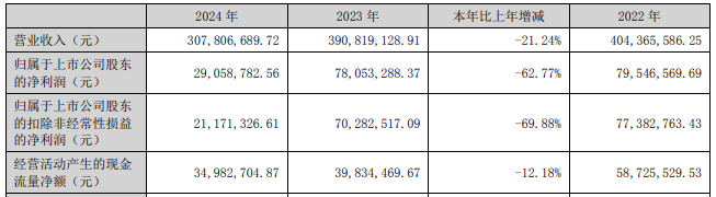 2022年至2024年,苏州规划营业收入分别为4.04亿元、3.92亿元、3.08亿元,归属于上市公司股东的净利润分别为0.80亿、0.78亿元、0.29亿元,归属于上市公司股东的扣除非经常性损益的净利润分别为0.77亿元、0.70亿元、0.21亿元,经营活动产生的现金流量净额分别为0.59亿元、0.40亿元、0.35亿元。