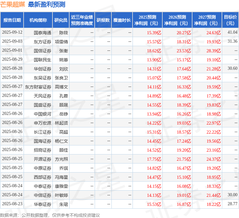 具体内容如下: 问:公司就投资者在此次活动中出的进行了回复,具体如下: 答:投资者,您好!2025 年上半年,公司实现营业收入 59.64 亿元,其中会员收入 24.96 亿元,QM 数据显示,上半年芒果 TV用户月活均值同比增长 14.24%,人均单日使用时长稳居行业前列;广告收入 15.87 亿元,二季度比一季度有明显暖;运营商业务收入 8 亿元,同比增长约 7%,重新步入增长通道。 2、近期,备受瞩目的综艺节目《声鸣远扬 2025》已经官宣,请简单介绍下节目相关情况 投资者,您好!近日,旨在发掘优秀歌唱人才的选拔类节目《声鸣远扬 2025》全球启动发布会在北京举行。湖南广电旗下湖南卫视、芒果 TV,协同北京、江苏、广东、辽宁、新疆等省级卫视和腾讯视频,联动微博、抖音、小红书、快手、B站等社交平台立体宣发,全力打造《声鸣远扬 2025》这一强联动、多形态、广触达的开创性品牌。更多节目信息,请您以节目官方发布为准。 3、广电总局今年 8月宣布印发实施“广电 21条”,提到电视剧制作播出、内容审查工作等众多与公司业务相关的内容。请问上述政策对公司和影视剧行业有什么样的影响? 投资者,您好。国家广播电视总局印发实施的《进一步丰富电视大屏内容 促进广电视听内容供给的若干举措》强调,要多措并举加强内容建设,增加优质广电视听内容供给。同时,国家广播电视总局将组织指导协调各相关单位,贯彻落实《若干举措》各项工作,实现更多精品、更广传播、更优环境,更好满足人民群众精神文化需求。《若干举措》的出台有力振奋了行业信心,鼓舞了行业士气,有望打开优质长剧的创作空间。 4、贵公司之前和抖音的微短剧合作有什么样的进展? 投资者,您好!此前,芒果 TV 与抖音发布了“精品短剧扶持计划”,双方共同推出了多部精品短剧。今年 4月,芒果 TV 与抖音集团旗下红果短剧达成系列合作,双方围绕优质成品短剧授权、IP 联动开发及联合出品、短剧商业化三大核心方向展开深度合作,并搭建芒果+红果双平台精品短剧联盟专区——“果果剧场”,实现芒果 TV 与红果短剧的内容互通。 5、数据要素是指参与社会生产经营活动并能产生经济效益的数据资源,公司背靠国资,请问有没有数据要素方面的投资以及布局? 投资者,您好!公司致力于构建以芒果 TV 为核心的头部数智传播平台,高度重视数据资源、数据要素的开发和应用,“芒果 TV 音视频行业高质量数据集建设”项目入选国家数据局高质量数据集建设先行先试名单,“高质量音视频数据赋能文化内容智能生产,驱动主流媒体系统性变革”项目获得 2025 年“数据要素×”大赛湖南分赛决赛赛道的好成绩。基于数据要素优势,公司上线 IGC 内容生产平台、短剧生产平台等技术产品,形成从数据要素到应用场景的完整技术生态。近日,在国家数据局举办的数据要素综合试验区建设新闻发布会上,湖南省数据局表示,支持湖南广电、芒果 TV等龙头企业建设可信数据空间,打造安全可信流通环境,为节目制作、数据交易等提供全流程安全护航。 6、公司作为国有控股企业,在提升公司治理水平、加强内控管理方面,有何具体举措? 投资者,您好!一直以来,公司严格按照法律法规和监管部门的相关要求,持续推进治理体系和治理能力建设,提升规范运作水平,形成了“四会一层”各司其职、各负其责、协调运转、有效制衡的公司治理体系。同时,公司不断健全内部控制体系和风险管理机制,建立“大财务、大审计、大法务”一体化风控体系,强化对核心业务、重点环节的监督,实现“事前、事中、事后”全面管理。 7、近期,湖南省足球联赛(湘超)火热进行中,请问公司是否有参与“湘超”相关业务? 投资者,您好!公司旗下的新媒体平台芒果 TV作为“湘超”传播矩阵的重要组成部分,将对部分场次进行直播,并上线一系列衍生节目,助力“湘超”出圈出彩。 8、请问公司目前海外收入大概多大规模,是否盈利? 投资者,您好!公司高度重视国际传播,积极致力于构建更有效力的国际传播体系,持续探索中国故事和中国声音的全球化表达。公司已成立专门公司负责芒果 TV 国际 PP运营,通过实施“芒果出海三年行动计划”(2025-2027),力争日均活跃用户“三年三连翻”。2024 年,公司海外业务收入约为 1.41 亿元,同比实现倍增。截至 2025 年 6月末,芒果 TV国际 PP 支持 9种语言界面和 17种字幕语言自由切换,覆盖内容超 25.5 万小时,累计下载量 2.95 亿,较年初增加13.8%。 9、公司在综艺领域有什么创新机制,并借此稳固并扩大综艺市场份额和领先优势? 投资者,您好!作为国内头部内容平台,公司一直致力于探索内容生产组织方式的最优解,从此前的工作室制度,到“赛道主理人”制度,再到今年上半年推出的“样片计划”,都是顺应内容发展趋势进行的机制创新迭代。云合数据显示,2025 年上半年芒果 TV综艺有效播放量继续稳居行业。 10、公司《小巷人家》《国色芳华》等剧集取得了良好的播出成效,贵公司是否会继续加大在优质影视剧方面的投入? 投资者,您好!根据云合数据,上半年芒果 TV影视剧有效播放量同比增长 69%,保持快速上升势头,影视剧内容体系建设取得长足进步。公司持续加大优质影视剧的内容投入,储备有《水龙吟》《咸鱼飞升》《野狗骨头》等影视剧近百部,题材多样,全面覆盖多圈层用户的审美偏好。芒果 TV、湖南卫视两大播出平台具备