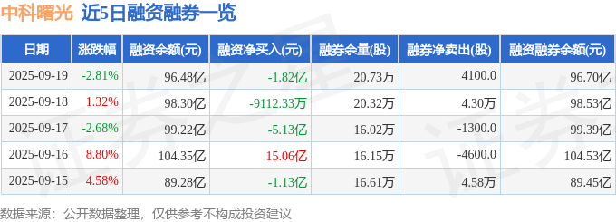 中科曙光融资融券信息显示,融资方面,当日融资买入16.56亿元,融资偿还18.38亿元,融资净偿还1.82亿元。融券方面,融券卖出1.04万股,融券偿还6300.0股,融券余量20.73万股,融券余额2214.59万元。融资融券余额96.7亿元。