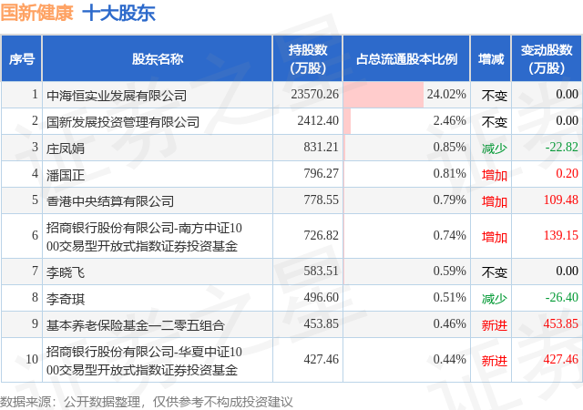 根据国新健康2025年中报公布的十大股东详情如下: