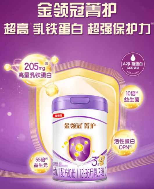 除了酪蛋白磷酸肽协同吸收配方,伊利金领冠菁护奶粉还围绕中国宝宝的生理特点,打造保护力和吸收力双效协同的配方体系,全方位解决喂养中的常见问题。