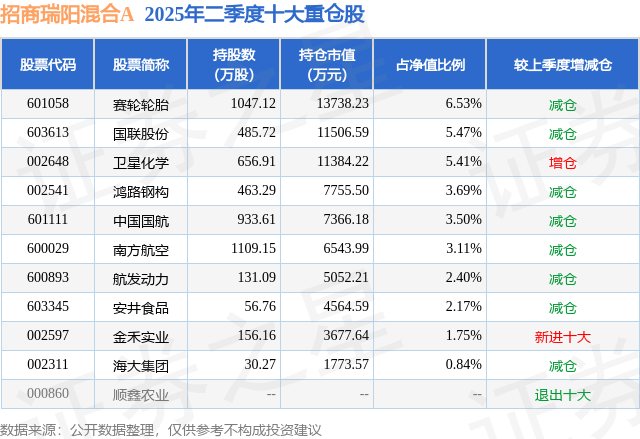 根据2025基金半年报公募基金重仓股数据,重仓该股的公募基金共10家,其中持有数量最多的公募基金为招商基金的招商瑞阳混合A。招商瑞阳混合A目前规模为15.69亿元,净值1.3095(9月18日),较上一交易日下跌1.04%,近一年上涨17.97%。该公募基金现任基金经理为李家辉 滕越。滕越在任的基金产品包括:招商信用增强债券A,管理时间为2017年7月29日至今,期间收益率为33.82%;招商民安增益债券A,管理时间为2020年3月6日至今,期间收益率为31.99%;招商安本增利债券A,管理时间为2022年1月5日至今,期间收益率为22.11%;招商安泽稳利9个月持有期混合A,管理时间为2023年11月14日至今,期间收益率为20.08%。李家辉在任的基金产品包括:招商鑫福中短债A,管理时间为2021年9月28日至今,期间收益率为11.37%;招商添利两年债券,管理时间为2021年12月18日至今,期间收益率为21.92%;招商招诚定开债发起式,管理时间为2022年1月27日至今,期间收益率为13.81%;招商鑫诚短债A,管理时间为2022年11月9日至今,期间收益率为8.16%。