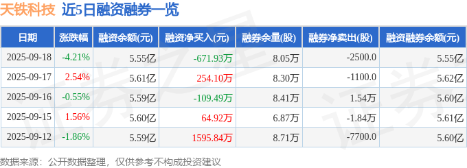 证券之星消息,截至2025年9月18日收盘,天铁科技(300587)报收于8.88元,下跌4.21%,换手率5.02%,成交量52.8万手,成交额4.74亿元。