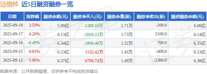 证券之星消息,截至2025年9月18日收盘,迈信林(688685)报收于64.02元,上涨3.59%,换手率5.2%,成交量7.56万手,成交额4.83亿元。