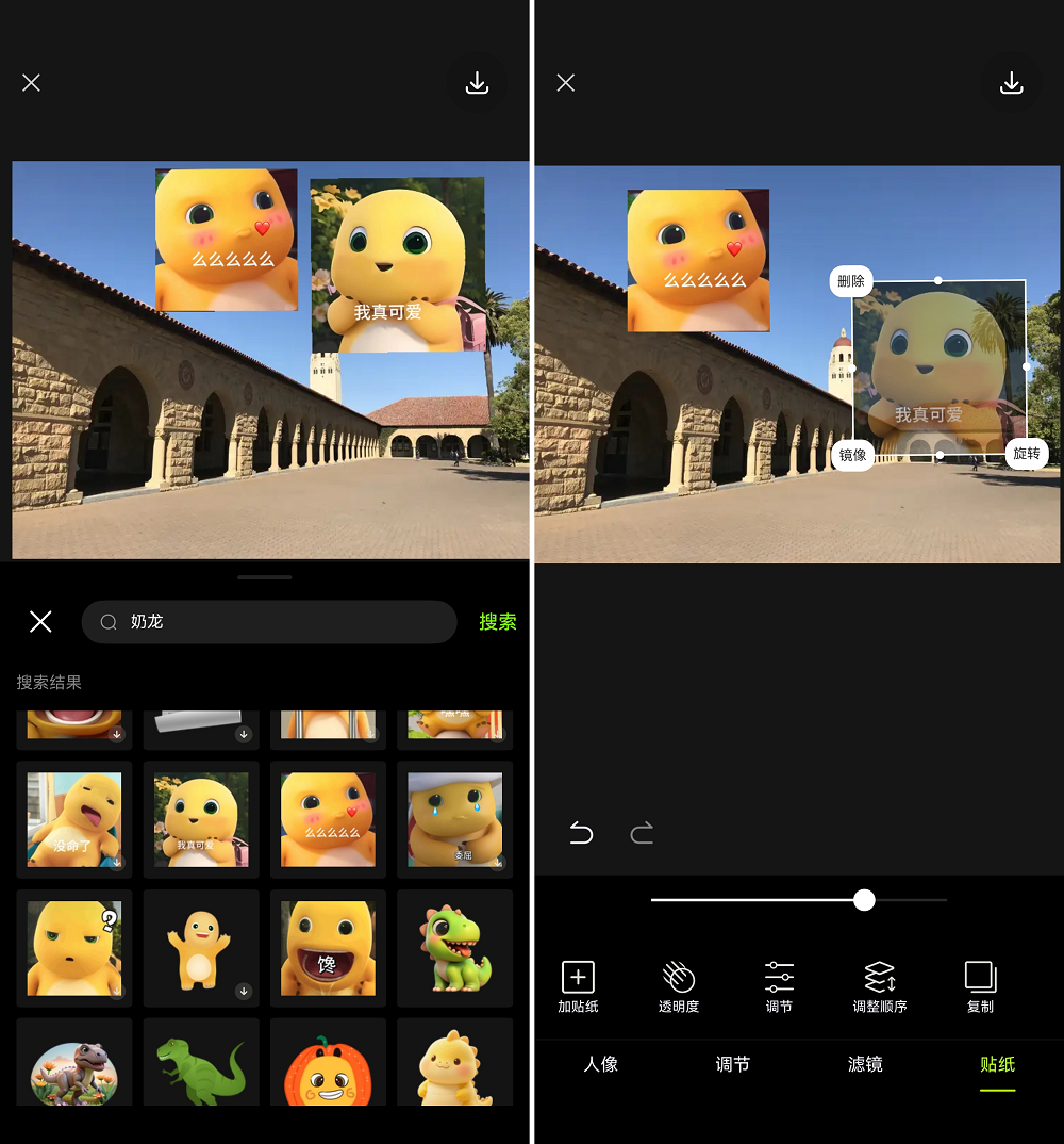 • DIY贴纸新玩法:支持贴纸高级编辑,随时调用,实现创意自由!