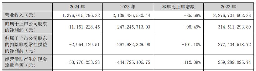 2024年、2025年上半年,公司实现归属于上市公司股东的扣除非经常性损益的净利润分别为-295.41万元、-1.29亿元。